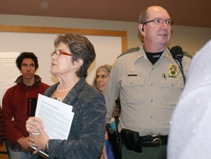 Underscoring how opposed they were to receiving public input, ODNR designated an outdoor, “free speech zone” for the ralliers, and forbade the public from bringing in signs, banners, backpacks, or audio or videocameras. One citizen was ordered to leave after recording officials’ comments. Ralliers brought their own solar-powered sound system, stage, and roster of speakers. “We will challenge these intolerable restrictions on our constitutional rights to freedom of speech and assembly,” said Smiles Welch, the emcee of the event.