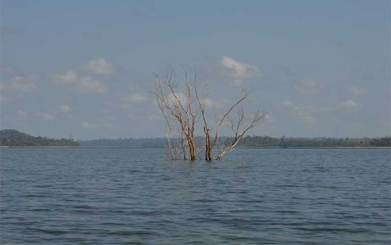 A tree submerged by the Belo Monte reservoir still shows above the water’s surface. Photo by Zoe Sullivan / Mongabay.