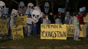 The marchers carried placards emblazoned with skulls and held a banner that read “Shut it Down! No New Wells!” and signs with slogans such as “Our Safety is Not for Sale”, “Defend Our Water”, “We Demand a Public a Hearing”, and “I Want my Concerns on Record” “. Marchers wore hazmat style suits and respirators to draw attention to the fact that Class II injection wells accept massive amounts of radioactive fracking waste from out-of-state.