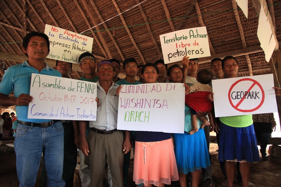 Achuar of Peru reject Geopark credit: Amazon Watch