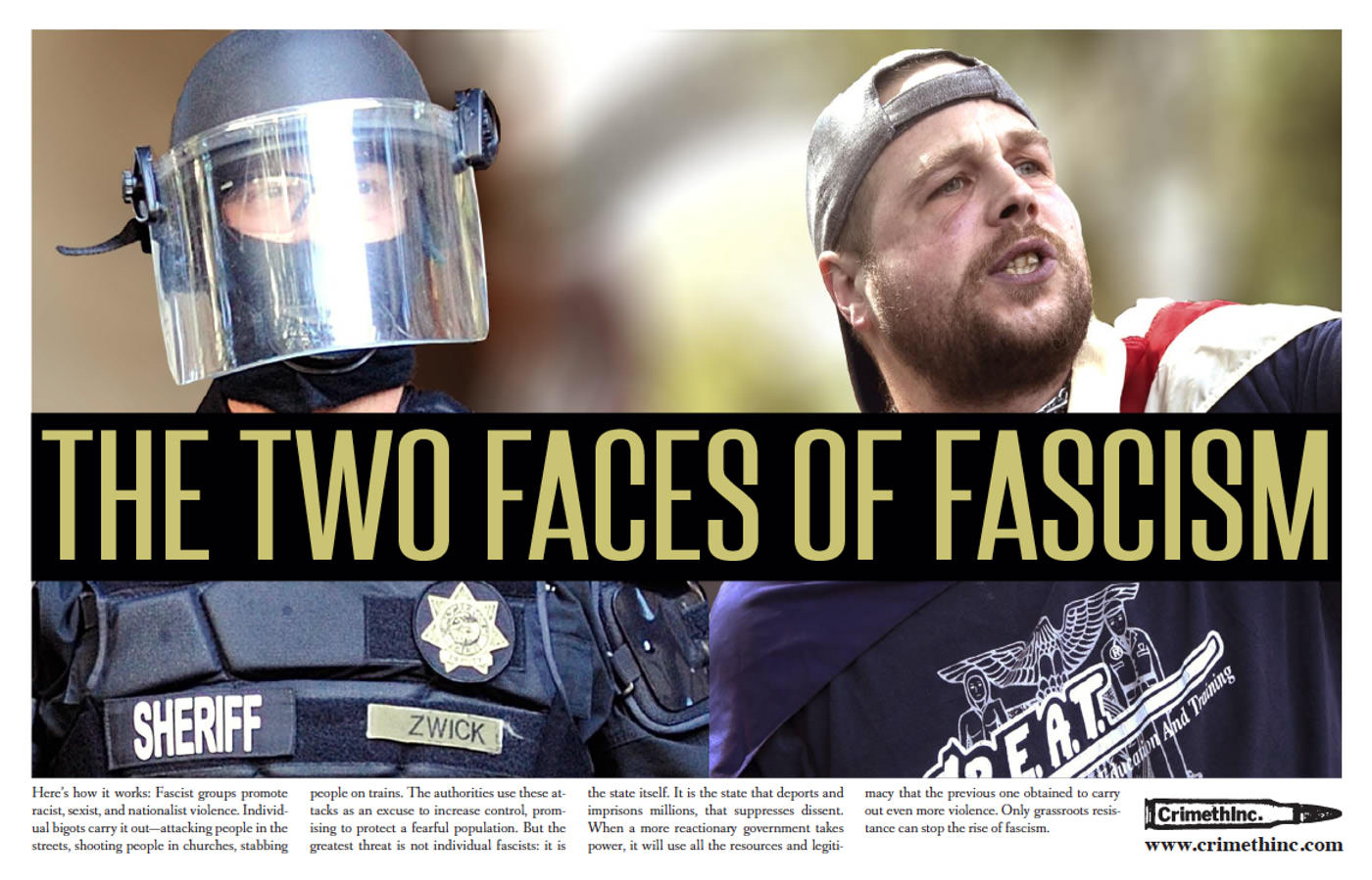 Already in 2017, after fascist Jeremy Christian murdered two people after attending a far-right rally in Portland, we were compelled to publish this poster explaining how fascists and Portland police work together.