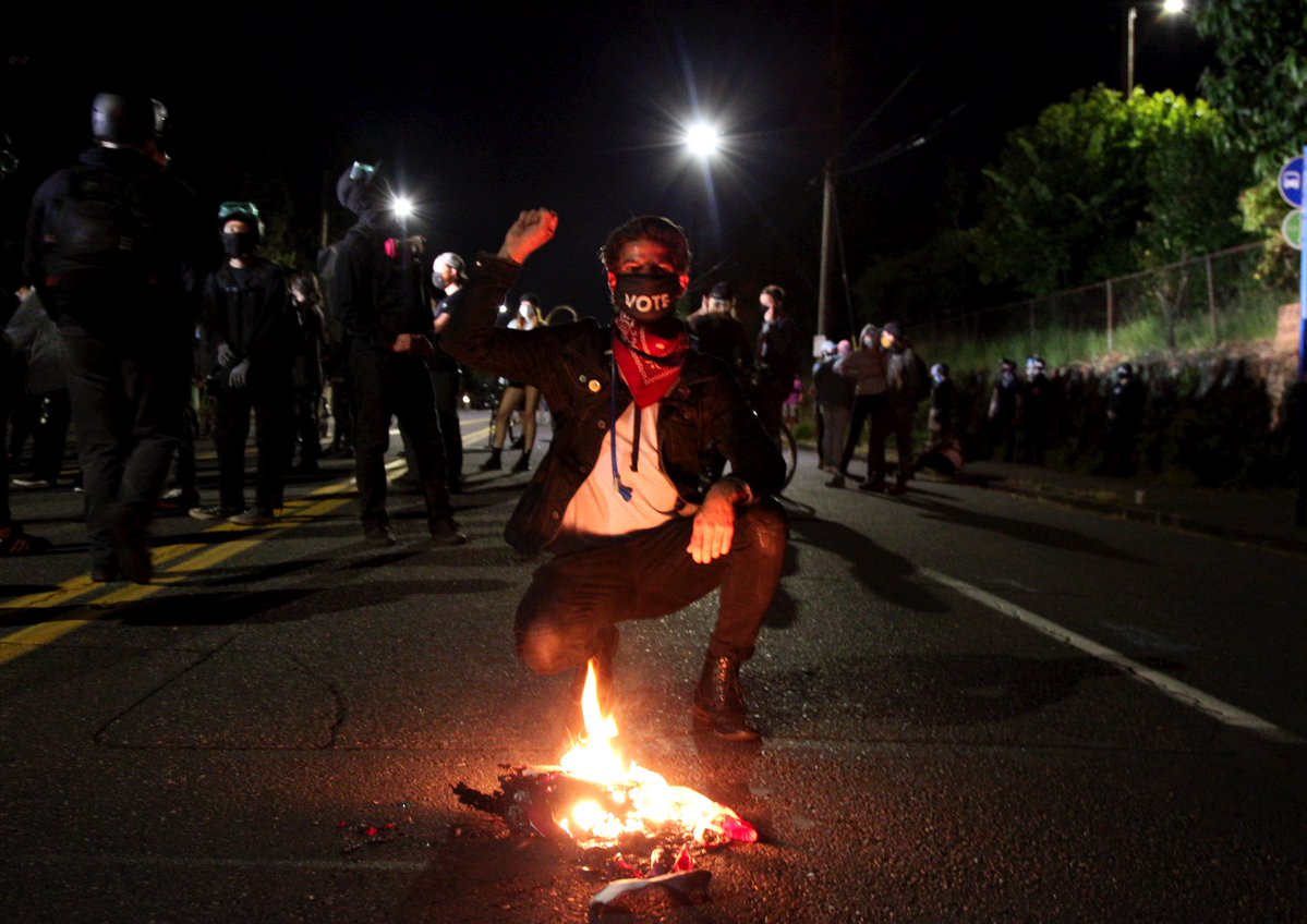 A demonstrator in Portland on the night of July 16.