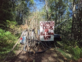Forest Defenders today have launched a blockade to prevent the clear-cut logging of a 100-year-old forest west of Olympia on the traditional territory of the Chehalis people. The forest, part of the critically endangered Puget Lowland Eco-Region, was auctioned off by the Department of Natural Resources as the “Chameleon Timber Sale” to the Elma based Murphy’s Logging Company. Protesters have set up a blockade preventing road building and logging in one of the largest and most biodiverse units of the timber sale. The site is home to a late-successional Douglas Fir forest (over 100 years since it was last logged), which is gaining old growth characteristics that support endangered wildlife.