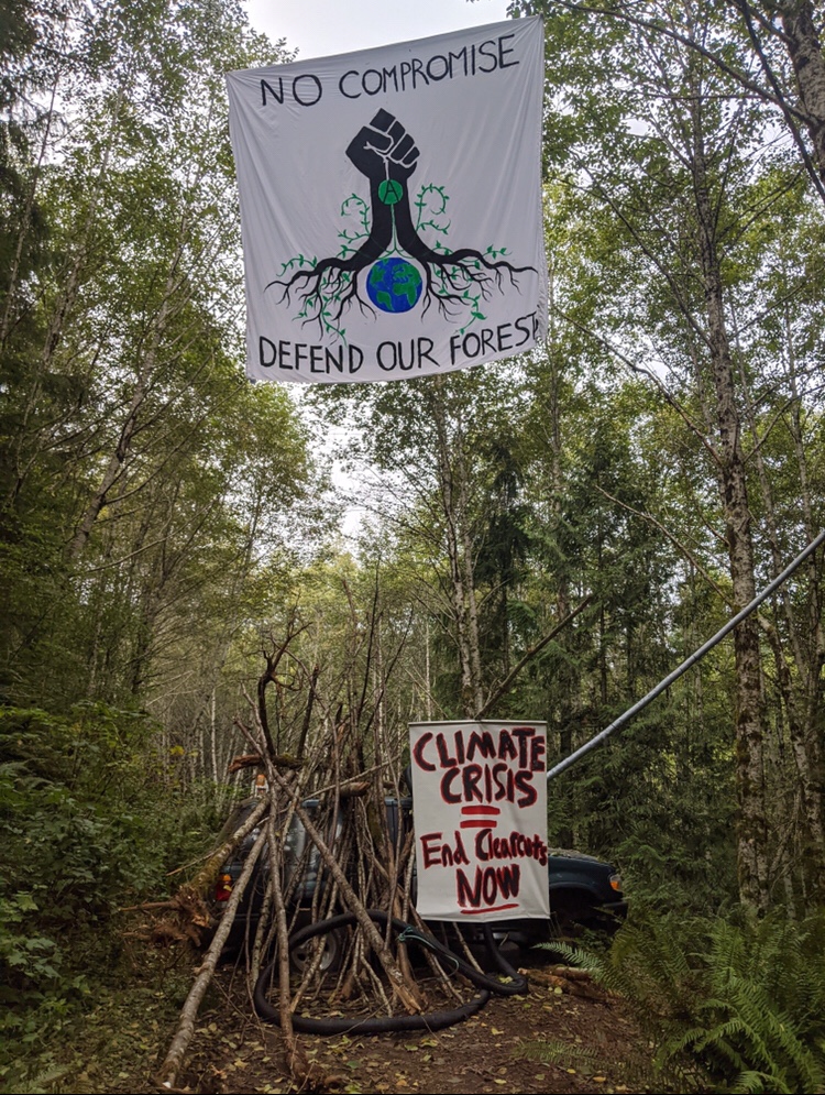 The two activists were briefly detained before being allowed to walk away while the officers attempted to negotiate with the remaining “treesitter” who continued to block the logging road. The DNR law enforcement eventually brought in spotlights and a generator and began to prepare for an extended siege of the treesit, which Mr. Frederick predicted would last a long time.