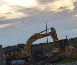 They set out meandering through the forest touching undergrowth, brush, breathing the cleanest air in the city, feeling the wetland take them in as their heels sunk beneath them. After a short walk, they reached an artificial break in the embrace of the forest. They found themselves upon the intrepid mound of dirt, a site of destruction, a jarring crack in the rythym of the forest. In the distance, 7 ungaurded machines were illuminated by the moonlight. They knew what they had to do.
