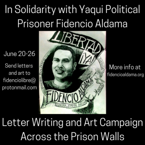 In solidarity with Fidencio and the struggle of his community Loma de Bácum, the Fidencio Aldama Support Group is calling for a week of letter writing and art creation from June 20 to 26, 2021. We encourage all who are reading this to write or make something during this week, either on your own or by holding an event.