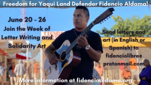For more information on Fidencio’s case and the anti-pipeline struggle in Loma de Bácum, visit our website at fidencioaldama.org, watch Fidencio’s call for solidarity and see this article summarizing Yaqui resistance to the pipeline and the specifics of Fidencio’s case.