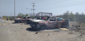 Various governmental vehicles were set ablaze today during a highway blockade in defense of the Pitayal near Puente Madera in the Isthmus of Tehuantepec, Oaxaca