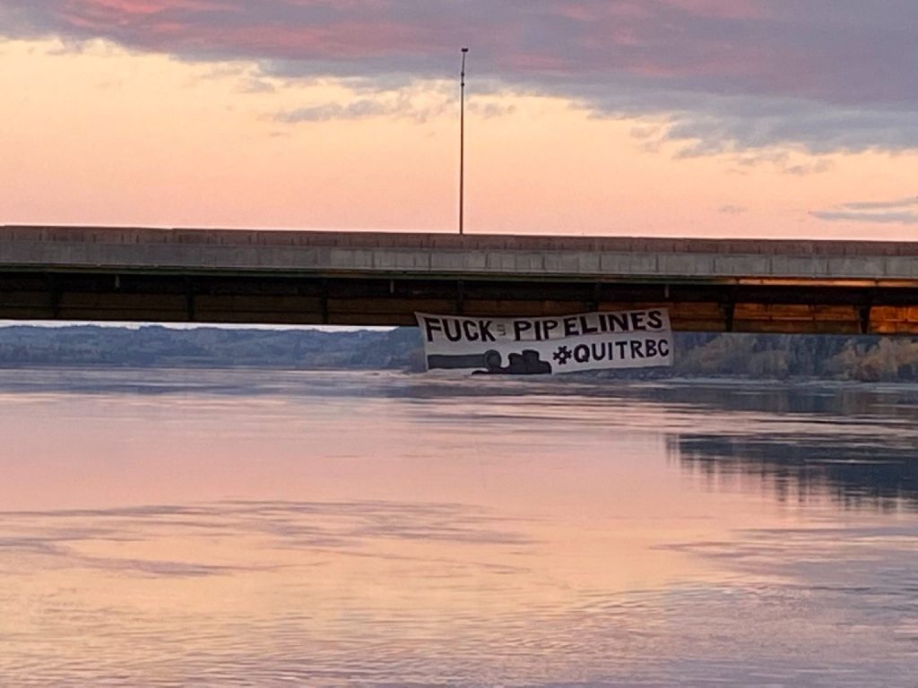 This action is undertaken in support of the ongoing blockade, in Montréal-Est, of the supply of diluted bitumen to oil tankers from the largest pipeline in Quebec, Enbridge’s line 9B.