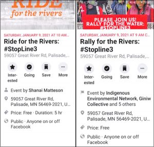 The tension came to a head on January 9, 2021. Matteson was one of several speakers at “Rally for the Rivers,” an event to raise awareness of the threats posed by Line 3. In her remarks, she urged the audience to fill out a jail support form if they were going to be “in a space where [they] could potentially be arrested.” These forms are used by advocacy groups to help organize legal aid for someone who is detained. They often keep a record of people’s basic personal information and contact information for their loved ones, as well as any medical, childcare, or other needs they may have if jailed for an extended period.