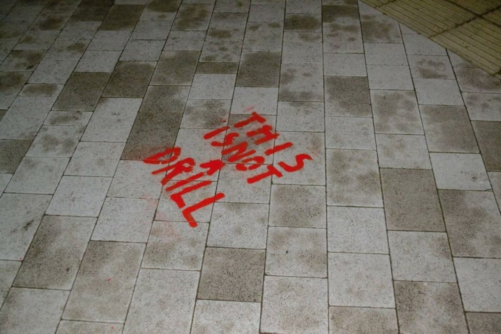 HIT REPORT. Over the weekend, environmental activists smashed the glass doors at the University of Cambridge Department of Chemical Engineering’s main entrance. They took this action in protest of the department’s fossil fuel research, funding and lobbying. The activists also spray-painted the words “THIS IS NOT A DRILL” on the building’s main walkway in red.