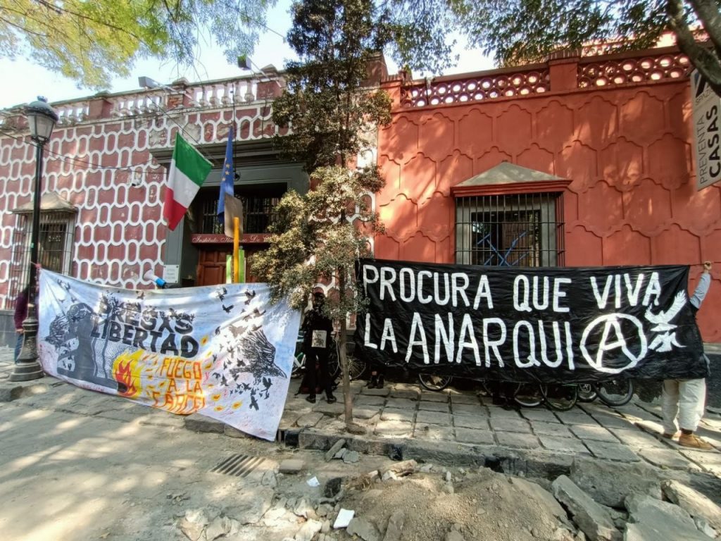 On February 8, 2023, anti-authoritarians and anarchists gathered outside the Instituto Italiano de Cultura (Italian Cultural Institute), a branch of the Italian Embassy in Mexico City. The objective was clear and concise: to denounce the Italian state for torturing and slowly killing the compañero Alfredo Cospito; and to show solidarity with the anarchist compañero who has been on a hunger strike for more than 110 days protesting his placement in the 41 bis isolation regime inside Italian prisons.