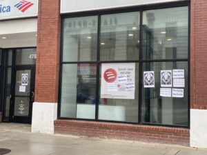 Early on January 27th, comrades gathered to honor Tortugita by wheat-pasting posters on the building and gluing the card reader outside the bank shut (although the tap function remained available, for anyone who was wondering).