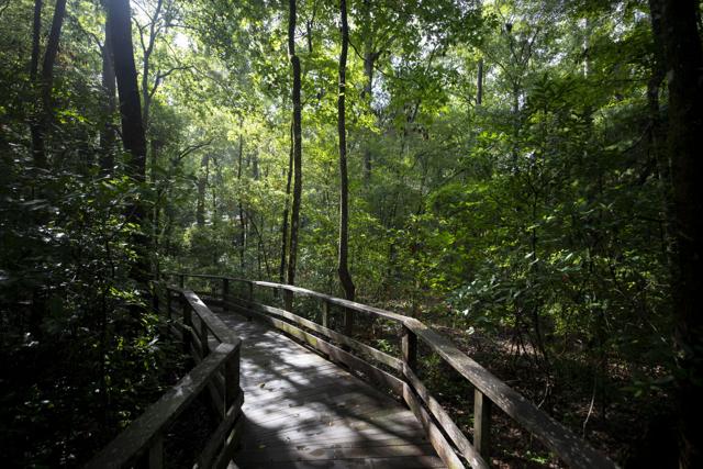 Despite its age, Beidler has a delicate ecosystem. In the oldest part of the forest, visitors can walk through the sanctuary — but they can’t walk on it. Elevated wooden paths, which Mixson said were built without uprooting a single tree, help protect the undercarriage from human destruction.