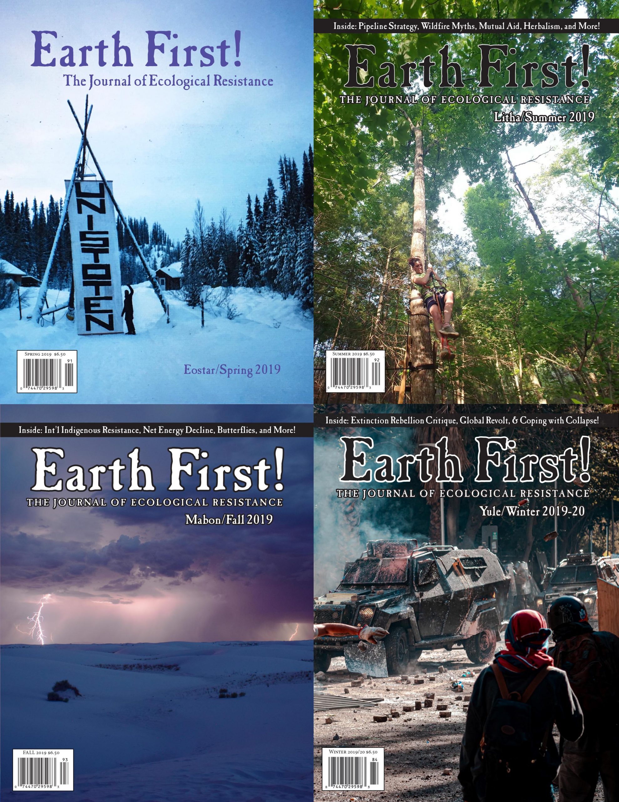 The Yule 2019-20 issue of the Earth First! Journal contains a survey of the uprisings that swept the globe this fall; interviews from two different struggles in Hawaii; and essays on eco-grief and community, the strategic missteps of Extinction Rebellion, and the unsavory history of eugenics in the environmental movement. Plus, there’s aquatic eco-erotica, missed connections, another crossword puzzle, and reportbacks from several direct actions and action camps!