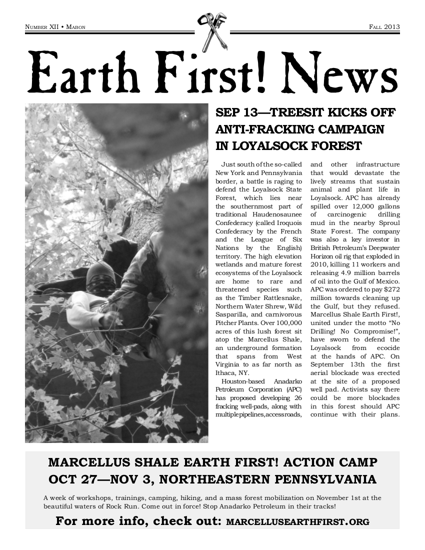 The twelfth edition of Earth First! News compiles three months of news from the front lines of ecological resistance. Download the free pdf, or view online. As always we encourage anyone who can to print and distribute freely. Stories include: