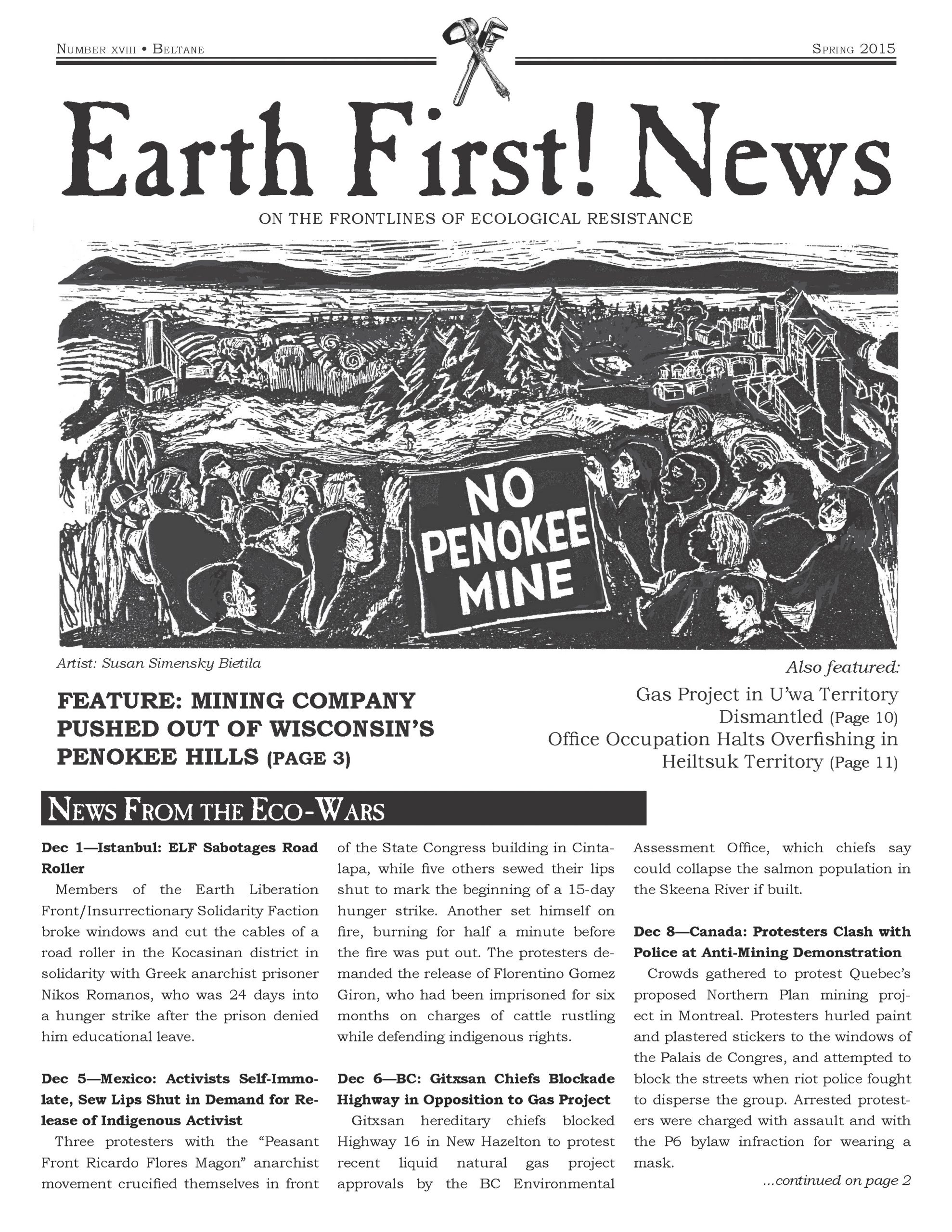 Just in time for May Day, this extended edition of Earth First! News includes direct action updates from December-April, tips on guerrilla gardening in urban landscapes, an updated eco-prisoner list and eco-action group directory, June 11 and Round River Rendezvous announcements, and stories of victory from the front lines of ecological and indigenous resistance.